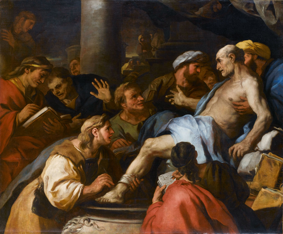 Oder Jusepe de Ribera, der Spanier, der sich in Neapel einen Namen für die Ewigkeit machte. Mit Körpern wie menschliche Irrlichter – blass und dürr und ausgemergelt – lässt er seine Heiligen aus dem asketischen Dunkel des Hintergrundes hervortreten. Und auch ist nicht ganz klar, was man mehr bewundern soll: die ekstatische Verzückung des Märtyrers im Angesicht der bevorstehenden Heimholung ins Paradies. Oder die planvolle Geschäftsmäßigkeit, mit der die Folterknechte darauf achten, dass auf dem Weg dahin bloß nichts schiefgeht.