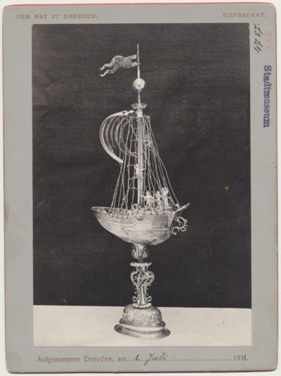 Der Dresdner Ratsschatz ist seit Ende des Zweiten Weltkrieg verschollen. Ab und zu taucht ein Stück auf dem Kunstmarkt auf: Ein Schiffspokal ist jetzt zurückgekehrt. Es besteht Hoffnung auf weitere Funde – wir bilden hier historische Fotos von den gesuchten Objekten ab. Beschrieben hat sie der Kunsthistoriker Cornelius Gurlitt, Vater des umstrittenen Kunsthändlers Hildebrandt Gurlitt, Anfang des 20. Jahrhunderts. Erika Eschebach, Direktorin des Dresdner Stadtmuseums, schildert die dramatische Geschichte der Sammlung.