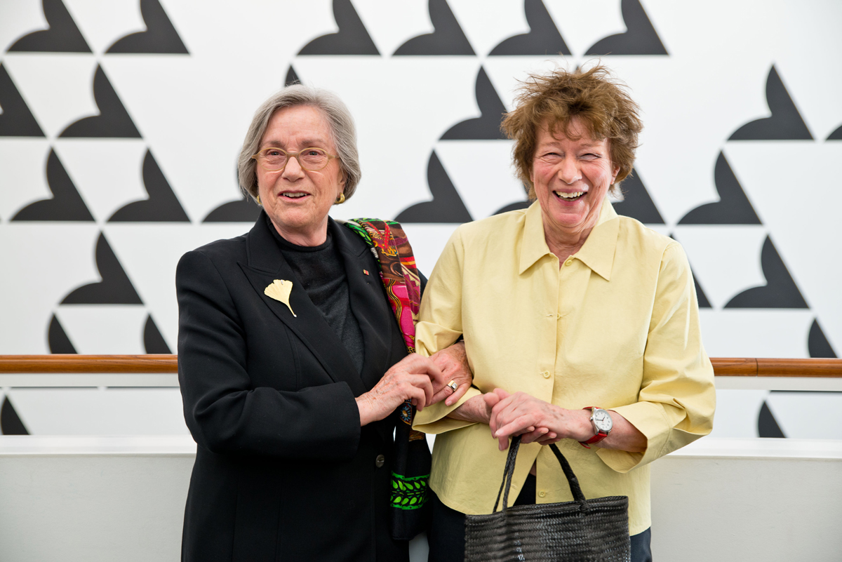 Die Verkäufe bedeuten nicht, dass Barbara Lambrecht-Schadeberg mit dem Sammeln aufhört. Sie sammelt nur keine Impressionisten mehr, sondern erwirbt seit zwanzig Jahren für das Museum Werke einer ganz klar definierten Gruppe von Künstlern: Rubenspreisträger. Alle fünf Jahre, seit 1957, verleiht die Stadt Siegen den nach ihrem berühmtesten Sohn benannten Preis an einen herausragenden Zeitgenossen. Auf Hans Hartung folgten Giorgio Morandi und Francis Bacon, später wurde die Ehre Cy Twombly und Rupprecht Geiger zuteil, der gerade in Siegen in einer Sonderausstellung zu sehen ist. Einige der Künstler hat Barbara Lambrecht-Schadeberg persönlich kennengelernt – sie erinnert sich fröhlich an den Apfelkuchen, den Maria Lassnig bei ihrem Besuch in Österreich gebacken hat. Eine herzliche Verbindung hatte sie auch zu Sigmar Polke, und „Bridget Riley und ich haben immer viel Spaß“, was man sich angesichts des Fotos der beiden gut vorstellen kann.