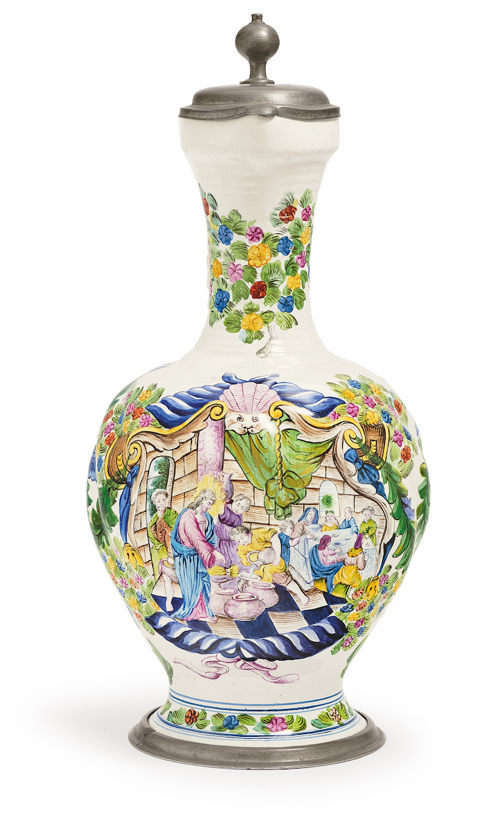Neumeisters Generation war keramikversessen. Diese Sparte spannt einen Bogen vom Creussener Planetenkrug aus dem Jahr 1668, der auf 5000 bis 7000 Euro taxiert ist, bis zum braun und gelb glasierten Rochlizter Honigkrug, der aus dem 18. Jahrhundert stammt und 400 bis 500 Euro einspielen soll. Ein Prachtstück ist zweifellos ein Nürnberger Hausmaler-Enghalskrug von 1719/29 mit einer Darstellung der Hochzeit von Kana, in schrillen Farben vermutlich von Justus A. E. Glüer bemalt. Für ihn werden 14.000 bis 16.000 Euro erwartet.