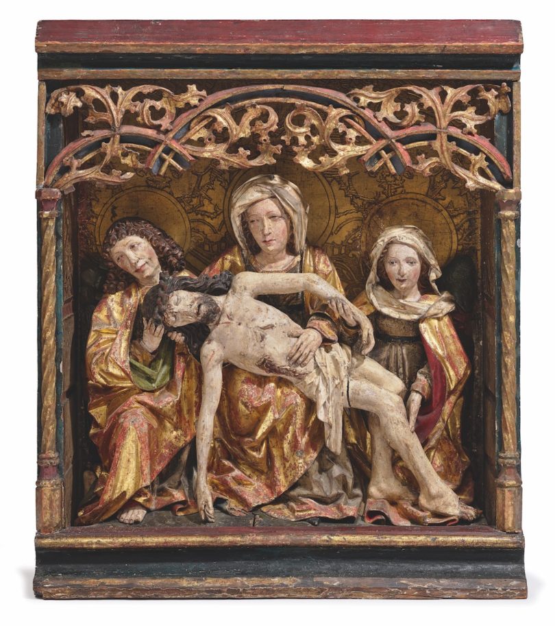 Eine emaillierte Rokoko-Tabatiere mit Jagdmotiv aus der Werkstatt Fromery, nun auf 1200 Euro geschätzt, begeisterte Rudolf Neumeister, der wegen seines autoritären Stils von allen der Patriarch genannt wurde, ebenso wie die expressive Ausdruckskraft der Beweinungsgruppe des Südtiroler Bildhauers Hans Klocker aus der Zeit um 1500. Die ursprünglich zu Klockers Barbara-Altar gehörende Predella ist mit einer Taxe von 120.000 bis 180.000 Euro eines der Highlights.