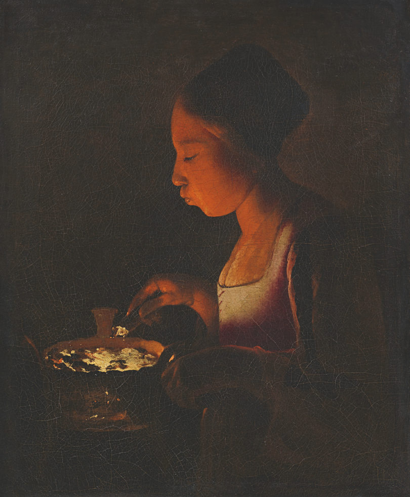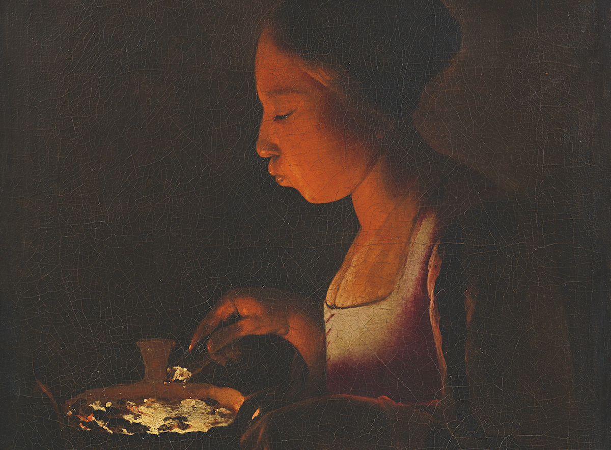 Das Spitzenstück der Auktion aber stellt ein Gemälde von Georges de la Tour dar. Um 1646 schuf der Meister nächtlicher Szenen das Porträt einer jungen Frau im Schein glühender Kohlen. „La Fillette au braisier“ zählt zu den charakteristischen Nachtbildern des barocken Malers aus Lothringen, andere hängen in Institutionen wie dem Louvre, dem Metropolitan Museum of Art oder dem Tokyo Fuji Art Museum. Knapp 50 Gemälde werden dem Künstler insgesamt zugeschrieben, und das Mädchen mit seinem von der Glut erleuchteten Leibchen und den fein sich kräuselnden Ärmeln des nur schemenhaft erkennbaren Kleides ist die letzte Nachtszene in Privatbesitz.