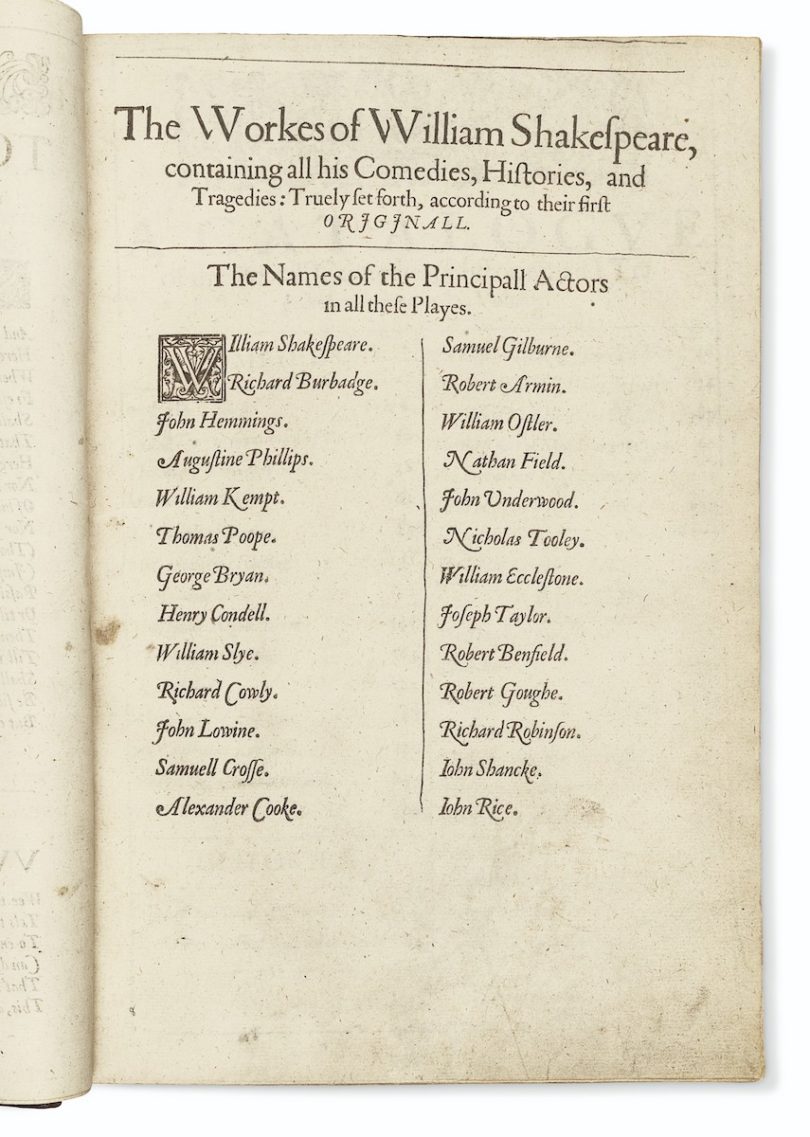 „First Folio“ mag als Stichwort für jemanden, der der Literatur und dem Theater fern steht, rätselhaft klingen – wenn nicht gar wie ein Allgemeinplatz. Aber wer ein wenig mit dem elisabethanischen England vertraut ist, wer den gedruckten Raritäten des 17. Jahrhunderts nachjagt, wer Shakespeariana sammelt, weiß zu schätzen, was sich hinter diesen beiden Wörtern verbirgt: nämlich die erste Gesamtausgabe von Mr William Shakespeares Comedies, Histories, & Tragedies.
