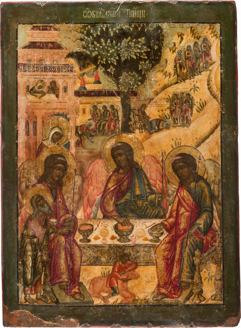 Die geografischen Schwerpunkte der Ikonenmalerei – Russland und Griechenland – sind bei Hargesheimer am 13./14. November in Düsseldorf mit teils museumsreifen Spitzenstücken vertreten. Konkurrenzlos mit einem Limit von 165.000 Euro ist eine monumentale, 108 mal 78 Zentimeter messende Ikone, die um 1680 entstanden ist und das orthodoxe Motiv der Dreifaltigkeit zeigt. Die kyrillische Inschrift auf der Rückseite weist darauf hin, dass Zar Fjodor III. Alexejewitsch sie einst als Hauptikone für den Altarraum einer Kirche im Belozjorsk-Kloster in Nordwestrussland schenkte. Bei den griechischen Ikonen ragt eine Darstellung der Gottesmutter heraus, die Andreas Ritzos (1421–1492) aus Heraklion zugeschrieben wird: Das mit 65.000 Euro limitierte Bildnis steht einer ebenso Ritzos zugeschriebenen Ikone im Ikonen-Museum von Recklinghausen nahe.