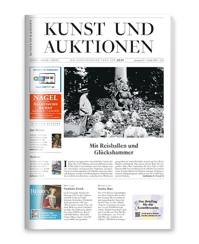 Mehrere Privatsammlungen sorgen bei Zeller in Lindau vom 26. bis 28. November für ein hochwertiges Programm in vielen Sparten. Aus rheinischem Privatbesitz stammt eine gut einen Meter hohe Uma-Mahesvaramuti-Stele aus schwarzem Stein, die im 13. Jahrhundert in Nordindien gefertigt wurde. Sie zeigt das göttliche Paar Shiva und Parvati (Ausrufpreis 5500 Euro). Aus einer Luxemburger Sammlung stammen mehrere Arbeiten des Zero-Künstlers Otto Piene. Die drei Gouachen „Black IV“, „Bleu marine IX“ und „Wellenlinien“ gehen mit jeweils 5000 Euro ins Rennen, für eine 1979 datierte Feuergouache werden mindestens 18.000 Euro fällig.