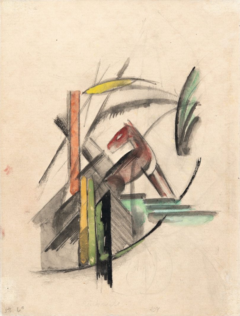 Im günstigsten Fall nachsichtig belächelt würde heute wohl Franz Marcs sexistisch gefärbte Farbtheorie, die er seinem Freund August Macke einst in einem Brief auseinandersetzte: Demnach manifestiere sich in kühlem Blau „herb und geistig“ das männliche Prinzip, während das Weibliche („sanft, heiter und sinnlich“) in lichtvollem Gelb adäquaten Ausdruck finde. Für genderbewusste Sammler hält Karl & Fabers Auktion mit Moderner Kunst am 10. Dezember in München allerdings ein um 1913 von Marc doppelseitig bearbeitetes Skizzenblatt bereit, das auf seiner Rückseite dem titelgebenden „Rötlichen Tier“ keine eindeutige politisch unkorrekte Farbaussage zumutet, sondern stattdessen die Form prismenhaft aufbricht (Taxe 350.000 bis 550.000 Euro).