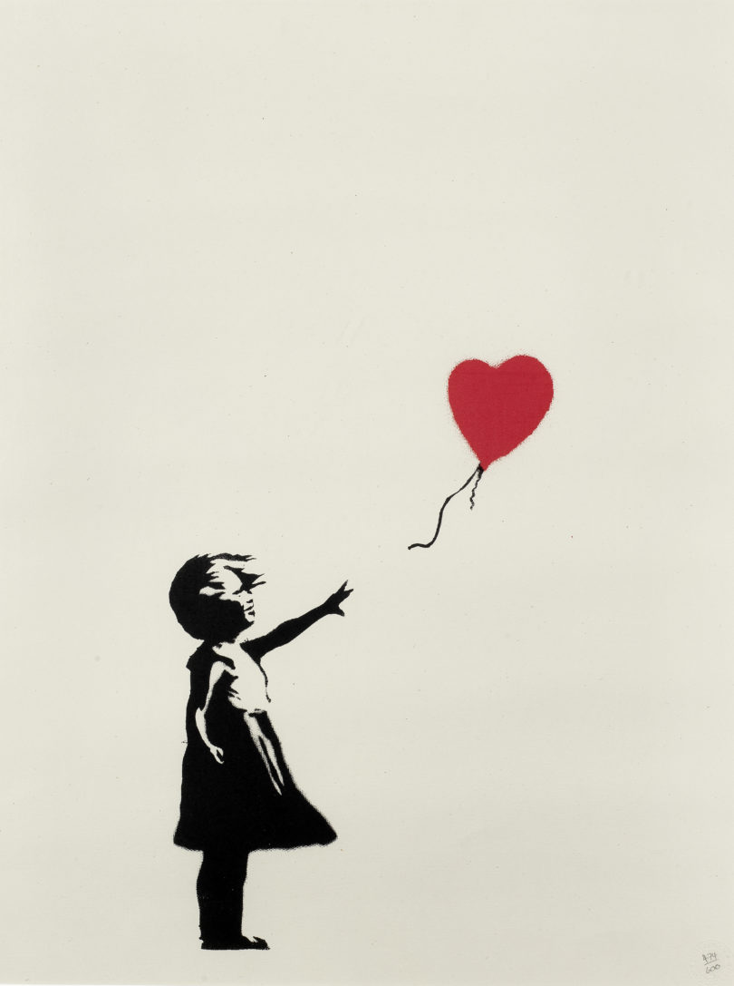 Nicht nur eine neue Eiscremesorte erhielt Mitte der Neunzigerjahre das Etikett „Cool Britannia“. Das Schlagwort wurde damals generell zur selbsterfüllenden Prophezeiung: Plötzlich galt jedes Kulturphänomen, das im Radius von 20 Meilen um den Piccadilly Circus herum entstand, als hip. In dieser Zeit schlich auch ein unbekannter Sprayer durch die Straßen Londons und hinterließ bemerkenswerte Bilder auf den Wänden. Banksy war angeblich sein Name. Das Londoner Auktionshaus Bonhams versteigert nun sein mittelgroßes Siebdruckbild „Girl with Balloon“ (2004) aus einer 600er-Auflage in der Auktion „British. Cool.“ am 25. Februar zum stolzen Schätzpreis von 120.000 bis 170.000 Euro. Oh well.