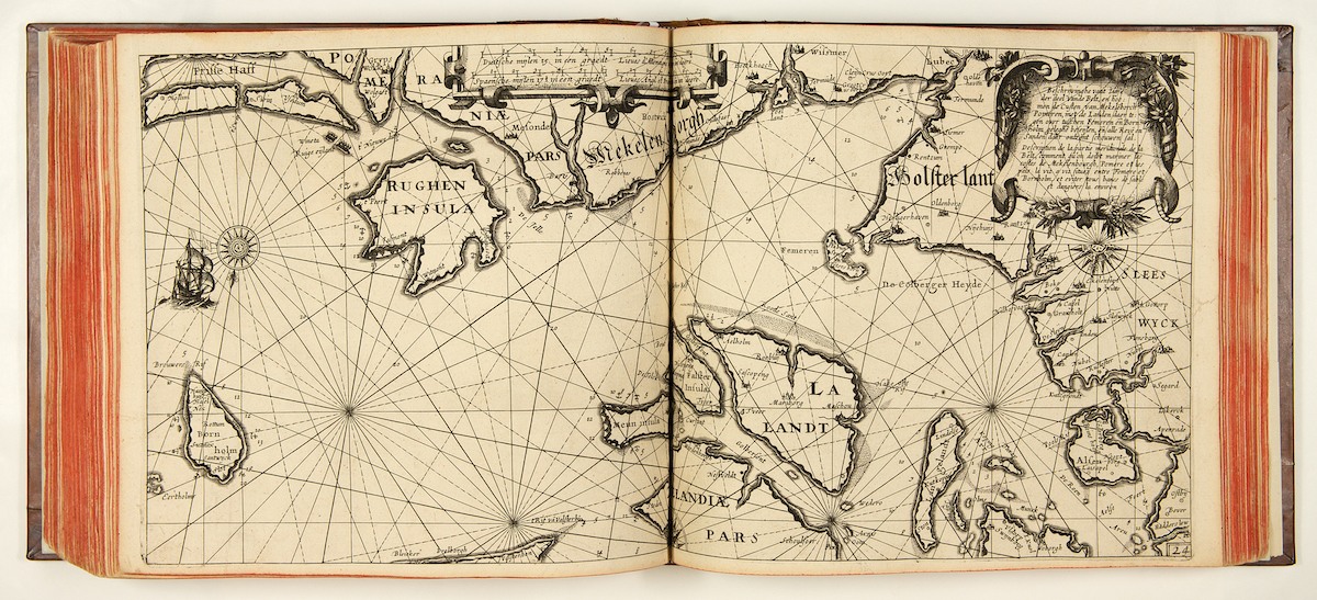 Auch die höherpreisigen Offerten außerhalb des Konvoluts durchzieht das Motiv der Reise: Das Toplos der Auktion ist Willem Janszoon Blaeus „Le Flambeau de la Navigation“ im Amsterdamer Druck von 1620. Seeatlanten und Navigationshandbücher gehören aufgrund ihrer geringen Auflage zu den Raritäten und teuersten Objekten in Buchauktionen. Dieses Navigationshandbuch aus der großen Zeit der niederländischen Kartografie zählt zu den bedeutendsten Lotsenbüchern für die europäischen Küsten. Das vollständig erhaltene Exemplar der ersten französischen Ausgabe mit 42 großformatigen Kupferkarten erreicht somit eine Schätzung von 50.000 Euro.
