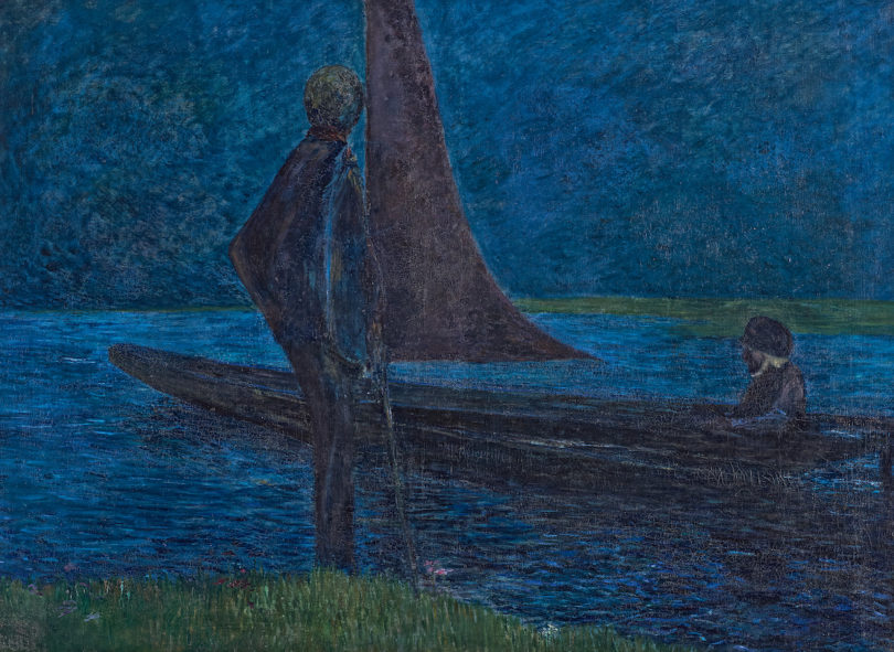 Danach fielen die Zahlen deutlich bescheidener aus: Genau zwei Jahre später kam die 1914 gemalte Ansicht „Hinterm Barkenhoff“ in der Cuxhavener Auktionshalle mit dem Hammerpreis 30.000 Euro nicht über die untere Taxe hinaus. Eine weitere Landschaft wurde im September 2017 bei Neumeister, München, versteigert, die Partie „Am Rand der Heide (Heidelandschaft I)“ wurde von gewohnt günstig geschätzten 10.000 auf 28.000 Euro gehoben. Nur wenige Tage zuvor hatte Bolland & Marotz, Bremen, das Märchen-Motiv „König mit Schäferin“ zum Startpreis von 50.000 Euro offeriert und auch vermittelt – ein für den neuen Eigentümer offenbar optimierbares Ergebnis, denn bereits im darauffolgenden November bekamen die Kunden von Grisebach das Bild nochmals zur Kurskorrektur vorgelegt. Das Ergebnis fiel nicht aus wie erhofft, denn der zweite, wohl auch allzu hastig angegangene Versuch endete mit einem Wertverlust von 10.000 Euro. Im März 2018 präsentierte Sotheby’s, London, einen Karton von 1923 mit dem untersichtig gegebenen „Treppenaufgang zum Barkenhoff“, der sich von 12.000 auf 25.000 Pfund verbesserte, drei Monate später wurde bei Grisebach, Berlin, ein seltenes „Blumenstillleben mit Rhododendron“ von 18.000 auf 30.000 Euro gehoben. Seither war die Offerte spärlich, und im Mai 2019 schrieb Van Ham Köln, denn auch das vorerst letzte Ergebnis für ein Gemälde Vogelers. Das in den Jahren vor der Jahrhundertwende entstandene Großformat „Juninacht“ wechselte für taxgerechte 40.000 Euro den Besitzer.