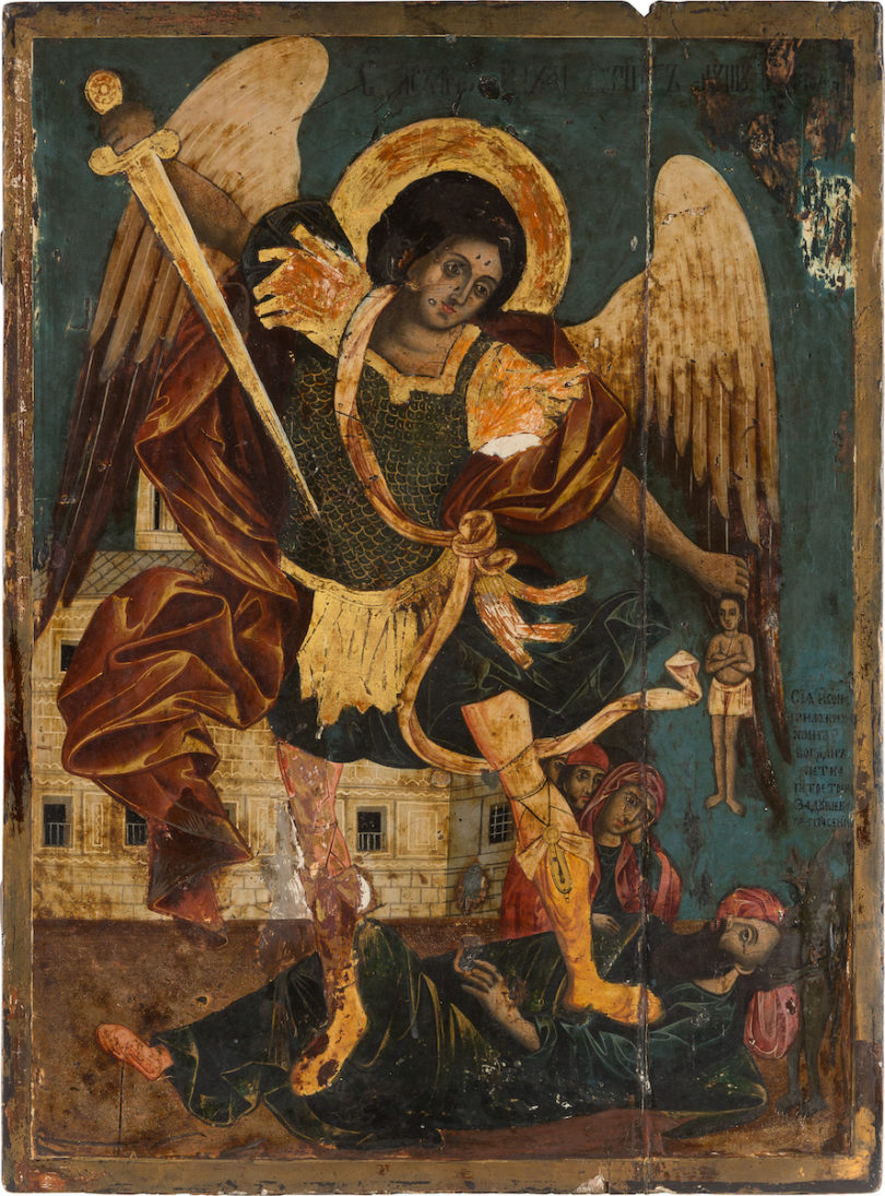 Gleich ob Michael nun mit gezücktem Schwert Satan in die Schranken weist oder auf rot-feurigem Pferd als Heerführer in den apokalyptischen Kampf stürmt: Sein martialischer Auftritt kam letztes Jahr im Handel mit etwa 85 Prozent Absatzchancen gut an – weit besser als seine „friedlichen“ Kollegen. Bei Hargesheimer in Düsseldorf etwa erzielte im November 2020 ein im 19. Jahrhundert entstandenes Exemplar aus Bulgarien 3400 Euro.