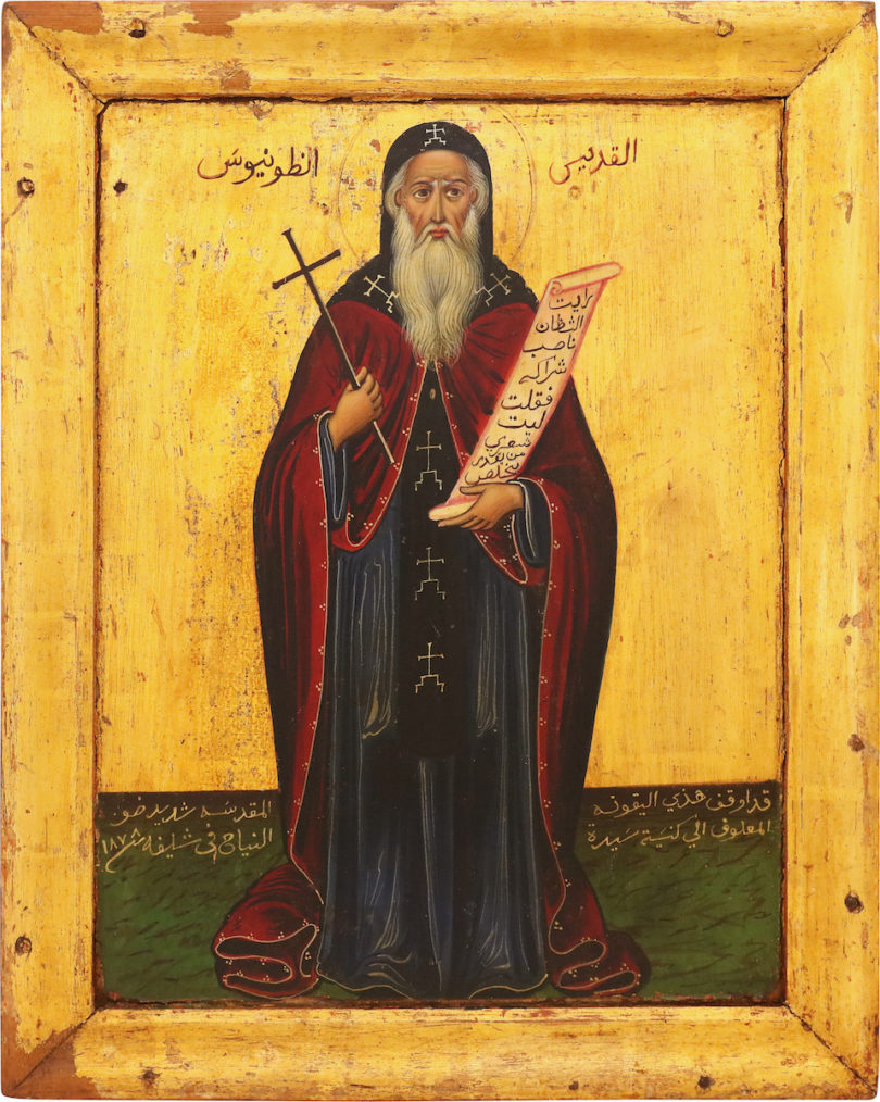 Im November 2020 kamen bei Hargesheimer in Düsseldorf mehrere Ikonen melkitischer Herkunft (als solche erkennbar vor allem an den arabischen Beischriften) zur Versteigerung: durchweg sehr erfolgreich. Es liegt nahe, einen oder mehrere Emigranten als Käufer zu vermuten, zumal die Stücke stets weit mehr als gleichwertige Stücke von griechischer Hand erbrachten. Eine melkitische Ikone des Wüstenasketen Antonius beispielsweise spielte mit 17.000 Euro mehr als das Dreifache des durchaus mutigen Aufrufpreises ein.