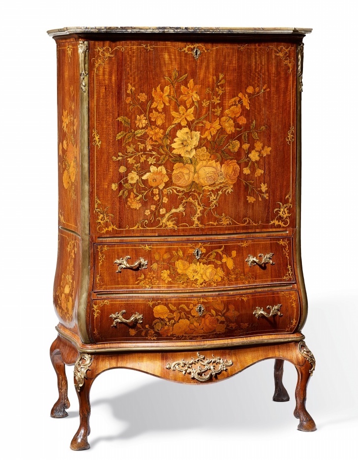 Der Möbelmarkt hebt nicht in allen Preislagen zum Höhenflug ab, aber er hat seine Sternstunden. Eine davon war gewiss die Versteigerung des aparten Kabinetts aus der Werkstatt des Pariser Ebenisten Adam Weisweiler: Nachdem im Oktober 2020 bei Christie’s New York das Bietgefecht um das grazile Möbel mit Pietra-dura-Front geendet hatte, mussten inklusive Aufgeld 1,1 Millionen Dollar bezahlt werden. Das war der Glanzpunkt der Versteigerung des Geschäftsinventars der legendären „Dalva Brothers“ aus New York – und das Auktionshaus hatte einen der raren siebenstelligen Brutto-Erlöse eingefahren, die in den letzten zwölf Monaten weltweit für Möbel gewährt wurden. Will Strafford, Christie’s Senior Spezialist für kontinentale Möbel, analysierte die Situation kurz danach treffend: „Das Ergebnis demonstriert die kontinuierliche Stärke eines Markts der Meisterwerke in Bezug auf französische Möbel des 18. Jahrhunderts.“