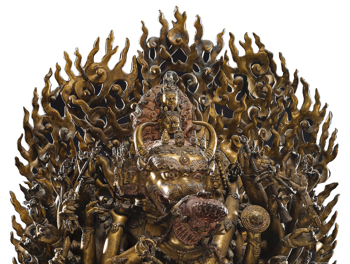 In der kommenden Asiatika-Auktion offeriert Nagel eine Figur des Yamantaka (Sanskrit: Vajrabhairava) aus einer Schweizer Privatsammlung. Schon einmal, genau vor sechs Jahren, konnte ein kleinerer, weniger bedeutender Yamantaka aus dem 15. Jahrhundert seinen Schätzpreis leicht von 50.000 auf fast 700.000 Euro steigern. Jetzt erwartet man noch Größeres in Stuttgart. Denn die knapp einen Meter hohe Statue aus der Ming-Dynastie hat kaiserliche Provenienz und wird durch eine Inschrift geadelt. Der Nagel-Experte Michael Trautmann hält sie für eines der bedeutendsten Bronze-Objekte auf dem Asiatika-Markt seit Langem. Für die Vermarktung hat er deshalb eine umfassende Marketing-Strategie angestoßen. Verschiedene Museen, darunter das chinesische Palastmuseum, und chinesische Bieter von Rang und Namen stehen in den Startlöchern, um die 1904 im Pariser Drouot und 1975 bei Alan Hartman in New York gehandelte Plastik zu ergattern. Die feuervergoldete Bronze startet mit einer Taxe von 1 Million Euro – abschließen könnte sie mit einem Spitzenergebnis.