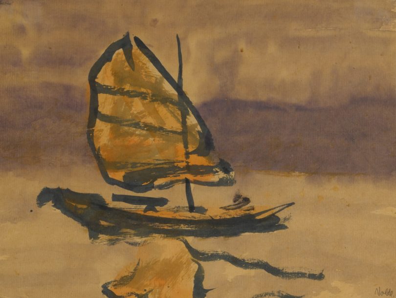 In der großen Krise der Berliner Secession von 1910, in der sich die unüberwindliche Kluft zwischen den bürgerlich-konservativen Impressionisten und der Generation der Expressionisten offenbarte, gebärdete sich Emil Nolde als erbitterter Gegner Liebermanns. Der Auslöser war: Unter dem Vorsitz Liebermanns hatte der Secessions-Vorstand 27 eingereichte Werke der Expressionisten zurückgewiesen. Nolde warf dem 20 Jahre Älteren empört Fortschrittsfeindlichkeit und diktatorische Allüren vor und giftete: „Dem so klugen alten Liebermann geht es wie so manchem klugen Mann vor ihm: Er kennt seine Grenzen nicht“. Der Eklat führte gegen Liebermanns Willen zum Ausschluss Noldes, der keine Zeit verlor und mit seinen Mitstreitern noch im gleichen Jahr mit der provokant titelnden Ausstellung „Zurückgewiesene der Secession Berlin 1910“ die „Neue Berliner Secession“ aus der Taufe hob. Von ihm wird ein Aquarell versteigert, das 1913 als Souvenir einer Südost-Asien-Reise entstand, für die der Künstler im Rahmen der Medizinisch-demografischen Neuguinea-Expedition des Reichskolonialamtes als Zeichner verpflichtet worden war. Das Fernweh-Motiv „Dschunken mit gelbem Segel vor violettem Himmel“ ist mit 24.000 Euro veranschlagt.