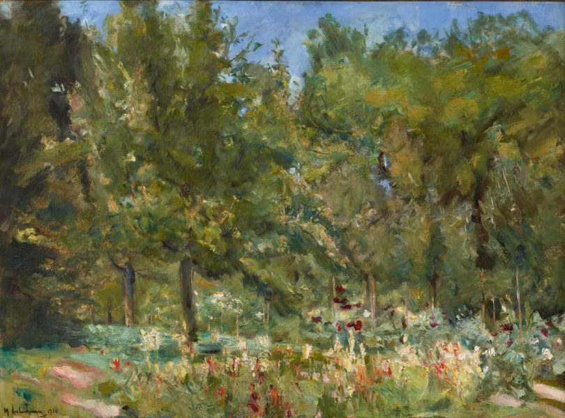 Sozusagen als Feuerprobe wird vom 10. bis 17. September unter dem Motto „Modern & Contemporary Art“ eine stattliche Auswahl an zum Teil bedeutenden Werken von Künstlern des 20. und 21. Jahrhunderts versteigert, darunter Originale von Max Liebermann, Max Pechstein, Alexej von Jawlensky, Emil Nolde und Rupprecht Geiger. Voraussichtlich am teuersten wird eines der begehrten Wannsee-Bilder von Max Liebermann. Das Motiv „Der Nutzgarten in Wannsee nach Westen“ entstand 1920, im gleichen Jahr, in dem der deutsche Vorzeige-Impressionist die Präsidentschaft der Berliner Akademie antrat. Trotz seiner exponierten Stellung im Berliner Kunstleben signalisiert die Reihe seiner seit 1915 / 16 einsetzen-den Gartenbilder bereits einen allmählichen Rückzug des alternden Liebermann vom Zeitgeschehen. Wider Willen wurde der in großbürgerlichen Verhältnissen lebende Künstler Augenzeuge der Revolution von 1918/19 und blutiger Straßenkämpfe direkt vor seinem Haus. Er nahm die wachsende Armut der Nachkriegsjahre wahr und auch die zunehmende Bedrohung durch den Antisemitismus. Und überhaupt empfand er Berlin nach eigenem Bekunden als „schmutzig und zerlumpt“. Zudem unternahm der über 70-Jährige in dieser Lebensphase auch keine größeren Reisen mehr, sodass der Garten seiner Sommerresidenz in Wannsee als Refugium und Gegenwelt zu einer zunehmend als fremd und feindlich wahrgenommenen gesellschaftlichen Realität immer mehr an Bedeutung gewann. Der im vorliegenden Bild gegebene Winkel des Gartens mit seinem dichten Baumbestand, der den Bildraum nach hinten abschließt, verleiht dem Ausschnitt einen intimen, interieurhaften Charakter. Veranschlagt sind dafür 300.000 Euro.