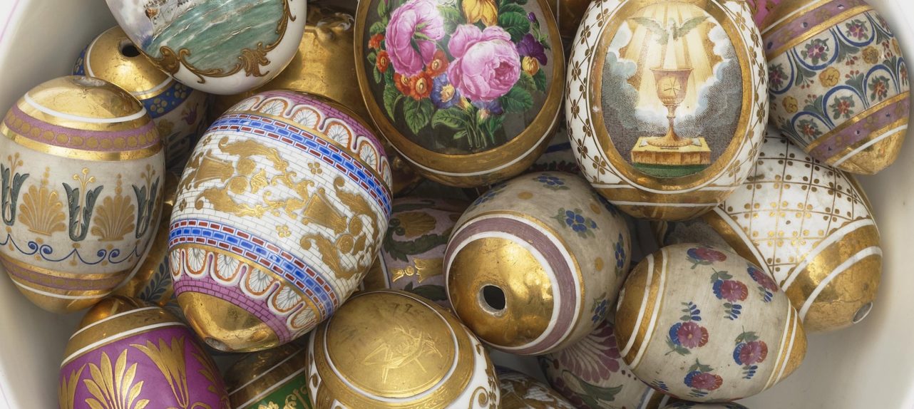 Die Tafelkultur nahm an den Fürstenhöfen des 18. und 19. Jahrhunderts eine herausragende Rolle ein. Man zielte auf eine glanzvolle Inszenierung, wie die in der Auktion offerierten Objekte dieses Sektors aus den Bereichen Goldschmiedekunst (rund 35 Lose) und Porzellan (110 Lose) zeigen. Das große KPM-Tafelservice „mit bunten natürlichen Feldblumen und kleinen Calitten (Schmetterlingen) nebst grünem Eichenlaub-Krantz um Bord“ umfasst circa 170 Geschirrteile (Taxe 2500 Euro). Das Modell (725) trägt die Bezeichnung „Glatt“. Es entstand in der spätfriderizianischen Zeit, als die Manufaktur sich dem neuen frühklassizistischen Stil zuwandte. Serviceteile, die zu Bruch gingen, wurden durch später angefertigte Stücke ergänzt. Die Losnummern 1010 (26 Teile) und 1011 (27 Teile) liefern die dazugehörigen Dessertteller, komplettieren also das Ensemble (Taxe je 1200 Euro).
