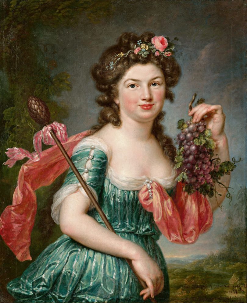 Die Grazie der Jugend … auch die Malerin selbst mochte nicht davon lassen und präsentierte sich noch 1778 – als immerhin 57-Jährige – mit jugendlich rosigen und gerundeten Wangen in ihrem französisch inspirierten „Selbstbildnis als Bacchantin“, das bei Bassenge, Berlin, Anfang Juni zum Aufruf kommt. Helmut Börsch-Supan, der auch das Gutachten schrieb, vermutet hinter der Selbstdarstellung als vitale und unverändert attraktive „Frau ohne Alter“ freilich mehr als nur weibliche Eitelkeit. Nach der Ankunft des 30 Jahre jüngeren Johann Heinrich Wilhelm Tischbein in Berlin ein Jahr zuvor habe die dominierende Porträtistin der preußischen Hauptstadt möglicherweise dadurch kommunizieren wollen, dass es für sie derzeit keinen Grund gab, ihren angestammten Markt bereits an die nachfolgende Generation zu übergeben.