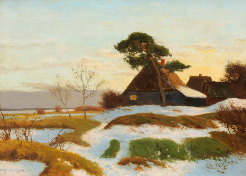 Durch eine in der Hamburger Kunsthalle gezeigte Retrospektive ist Ernst Wilhelm Nay wieder verstärkt in den Fokus von Sammlern gerückt, zu seinen typischen Feder- und Tuschezeichnungen zählen auch die in Ahrenshoop angebotenen „Fischer“ von 1936, sie werden mit attraktiven 4400 bis 5500 Euro aufgerufen. Eisige Winterbilder aus der Region um Ahrenshoop sind selten, die meisten dort entstandenen Werke aus der lebendigen Zeit der Künstlerkolonie von 1861 bis 1941 berichten von einem ewigen Sommer. Umso interessanter ist der stimmungsvolle „Winter am blauen Haus“ (6500 bis 8500 Euro) von Paul Müller-Kaempff, mit dem er an diese hier so selten dargestellte Jahreszeit erinnert. Das zusätzlich eingerichtete „Kleine Kabinett“ mit ausgewählten kleinformatigen Arbeiten auf Papier ergänzt in Ahrenshoop das große Auktionsangebot und macht vor allem mit durchgängig niedrigen Preisen und einigen schönen Trouvaillen auf sich aufmerksam.