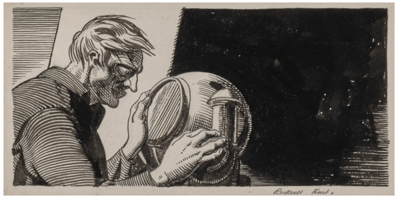 Aus der Fülle der illustrierten Ausgaben des Moby Dick ragt vor allem die Version mit den eindrucksvollen Holzschnitten von Rockwell Kent heraus, die 1930 bei der Lakeside Press in Chicago in tausend Exemplaren verlegt worden war. Die drei Bände in einem Aluminium-Schuber werden auf 3000 Dollar geschätzt, denn die Zuschläge lagen in den letzten Jahren meist bei 4000 Dollar. Wer dasselbe ein wenig exklusiver möchte, kann jedoch auf ein besonderes Exemplar zurückgreifen, das Kent seinem Verleger Thorne Donnelley und dessen Frau mit einer Zeichnung gewidmet hat. 15.000 Dollar erfordert das. Die Illustrationen sind inzwischen so populär, dass sie auch in normalen Bänden und Paperback-Ausgaben nachgedruckt wurden. Und wem auch das noch nicht genügt, der kann zwei Konvolute von zwanzig und mehr Tellern und Tassen, einmal in Blau, einmal in Braun, ersteigern. Denn Kent hat Motive seiner Holzschnitte für die Kalifornischen Vernon Kilns auf Steingutgeschirr übertragen. Für je 700 Dollar sollen die beiden letzten von hundert Losen zu haben sein. Dazu bedarf es dann nicht einmal einer Dublone.