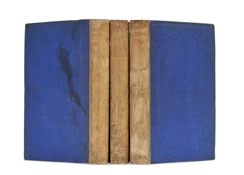 Die englische Ausgabe in drei Bänden hieß noch The Whale, beschränkt auf 500 Exemplare. Außerdem hatte der Verleger 35 Stellen, die seiner Meinung nach den gebührenden Respekt vor der Religion und dem Königshaus missen ließen, gestrichen. Zudem fehlte in dieser Ausgabe der kurze Epilog, in dem Ismael, der Ich-Erzähler und einzige Überlebende der „Pequod“ seine Rettung schildert. Christie’s erwartet für eine Ausgabe mit dem Originaleinband 60.000 Dollar. Der beste Zuschlag liegt allerdings erheblich höher. 110.000 Dollar waren das im Juni 2019 bei Sotheby’s. Richard Bentley, der Londoner Verleger, hatte in den ersten vier Monaten 300 Exemplare verkauft. Die restlichen, meist ungebunden, bot der Verlag dann in den beiden nachfolgenden Jahren mit einem schlichteren Einband an. Deshalb reduziert sich für einen modernen Halblederband die Erwartung um jeweils 10.000 Dollar. Das gilt auch für ein ebenfalls auf 50.000 Dollar taxiertes weiteres Exemplar dieser Erstdrucke mit der Jahreszahl 1853.