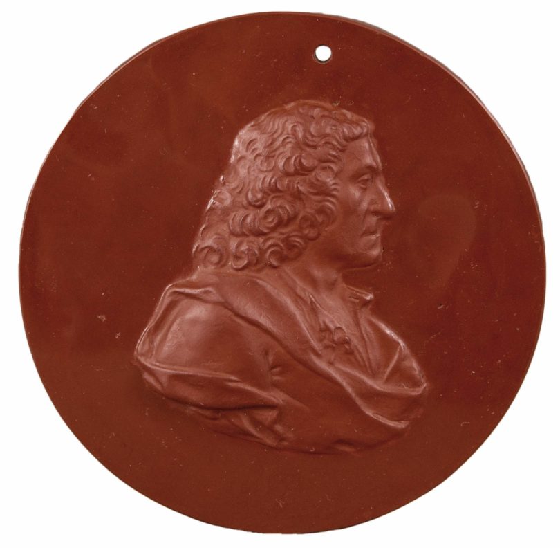 Alle Böttgersteinzeug-Stücke der Sammlung sind in die Zeit zwischen 1710 und 1712 datiert. Wie gut sich die Oberfläche des „roten Goldes“ polieren lässt, zeigt ein auf 25.000 Euro taxierter Walzenkrug mit Sockel und Reliefdeckel aus vergoldetem Silber. Spiegelglatte Bahnen wechseln sich reizvoll mit mattem Rautenmuster ab. Was der harte Werkstoff erlaubt, illustriert auch eine Teekanne, die man nach dem Brand wie ein Edelstein mit Facetten schliff (Taxe 28.000 Euro). Auf 36.000 Euro ist eine Reliefplakette mit Böttgers Profil geschätzt. Die Zeitgenossen wussten Böttgers Bedeutung zu würdigen, denn das Porzellan war die Kunstinnovation schlechthin im 18. Jahrhundert.