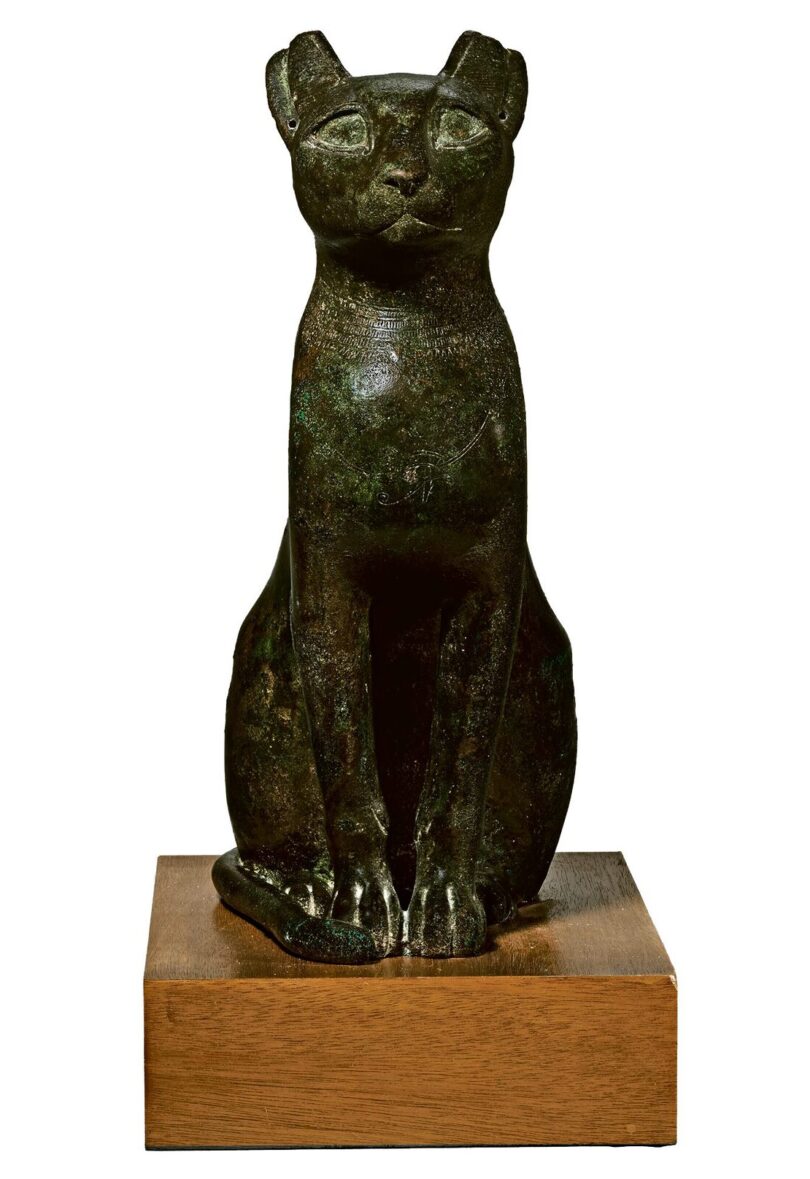 Herausragend war auch die Bronzeplastik einer Katze, die am 12. April bei Christie’s New York zum Aufruf kam. Weniger aufgrund ihrer Provenienz als vielmehr wegen ihrer stattlichen Größe von fast 40 Zentimetern. Da viele Tiere und insbesondere Katzen im Alten Ägypten eine bedeutende Rolle spielten und als heilig galten, wurden sie oft bildlich dargestellt. Hockende Katzen aus Bronze tauchen in verschiedenen Größen und Qualitäten auf. Meist sind sie nur ein paar Zentimeter groß, doch das Exemplar aus der ptolemäischen Zeit (332 – 30 v. Chr.) bei Christie’s war lebensgroß und dazu noch besonders realistisch modelliert. Das trug dazu bei, dass der hohe Schätzpreis von 700.000 Dollar mit dem Zuschlag bei 880.000 Dollar sogar noch gesteigert werden konnte.