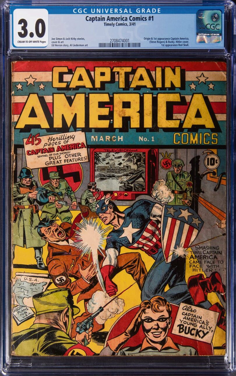 Die erste Nummer von „Captain America“, erschienen am 20. Dezember 1940 bei Timely Comics, erzielte bei einer Online-Auktion des Hauses Goldin 122.000 Dollar. © Goldin, Runnemede/New Jersey