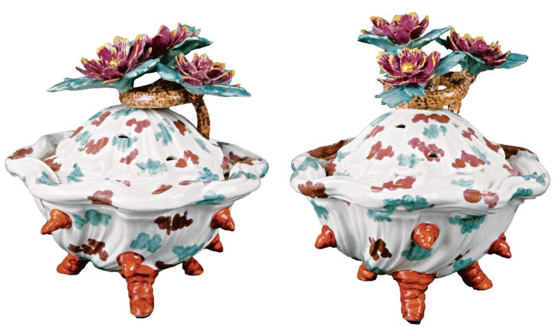 Natürlich fehlen die Meissener Kleinskulpturen nicht, die seit 1731 unter dem genialen Modelleur Johann Joachim Kändler eine neue Kunstform entwickelten. Aus der Fülle des Angebots seien ein farbenfrohes Papageienpaar (24.000 Euro), die satirische Szene einer alten reichen Frau mit ihrem jungen, geldgierigen Liebhaber (2600 Euro) oder die Straßenhändler aus der Serie „Cris de Paris“ (2200 bis 2400 Euro) herausgegriffen. Wer mit noch kleinerem Geldbeutel einsteigen will, wird zu Taxen bis unter 500 Euro in der 70-teiligen Ludwigsburg-Sammlung fündig, die den hohen Standard der 1758 gegründeten Manufaktur demonstriert. Die Preise konnten mit Meissen nie mithalten, sind aber zuletzt weiter gefallen. Wer ein lohnendes antizyklisches Sammelgebiet sucht: Hier ist es.