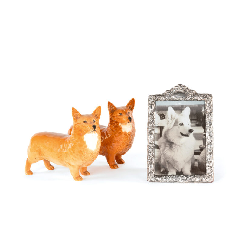 Königin Elisabeth war bekannt für ihre Liebe zu Corgis, während ihrer Regentschaft kamen mehr als 50 der Hofhunde auf die Welt. Zwei königliche Corgis aus Porzellan inklusive eines gerahmten Fotos eines Corgis können für 200 Pfund ersteigert werden. Ein mit schwarzen und grauen Pailletten besticktes Ballkleid, das Lia Williams in der Rolle von Wallis Simpson trug, soll mindestens 1500 Pfund einbringen. Sie stellte es während eines Fotoshootings mit ihrem Mann Eduard VIII., gespielt von Alex Jennings, zur Schau. Die Beziehung zu der Amerikanerin Simpson war damals der formelle Grund für die Abdankung Eduards, der nur ein Jahr lang König von England war, bis sein Bruder König Georg VI. das Zepter übernahm. Auch diverse Kostüme von Prinzessin Margaret, der Schwester von Elisabeth, kommen zum Aufruf. Das elegante Hochzeitskleid, welches Vanessa Kirby in der Rolle der Prinzessin trägt, ist auf 6000 Pfund taxiert.