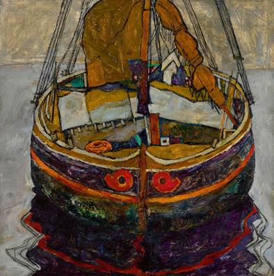 Stahlgrau ist das Wasser, auf dem Egon Schieles „Triestiner Fischerboot“ in träumerischen Farben schwimmt. Das quadratische, mit Bleistift linierte Gemälde von 1912 verlangt bei Sotheby’s am 26. Februar nach ambitiösen 6 bis 8 Millionen Pfund.