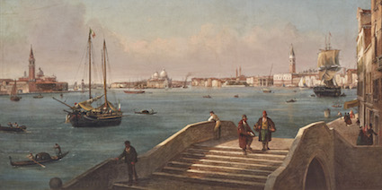 Die Arbeiten italienischer Künstler, die im Dorotheum am 29. April traditionell stark vertreten sind, wecken Sehnsucht nach Italien, etwa die prächtige „Riva degli Schiavoni“ des Venezianers Luigi Querena (Taxe 90.000 bis 110.000 Euro).