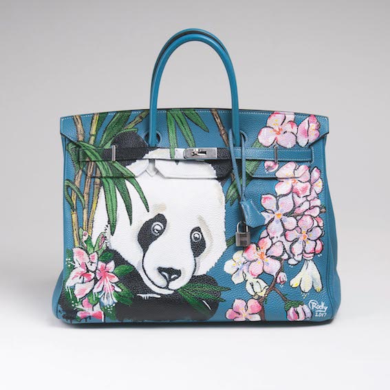 Rocky Mazzilli hat sich als Künstler Popularität erarbeitet, weil er Handtaschen nach Kundenwünschen bemalt, etwa mit Disneys Onkel Dagobert. Sein schönstes Werk – der „Cherry Blossom Panda“ auf einer Birkin Bag von Hermès – wird nun bei Stahl am 13. April zum Limit von 9000 Euro angeboten.