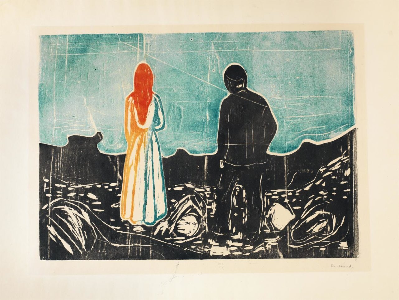 Die melancholische Grafik „Zwei Menschen – Die Einsamen“ (1899) des norwegischen Malers und Grafikers Edvard Munch kam in der Juniauktion der Galerie Kornfeld in Bern unter den Hammer und verdoppelte dabei den Schätzpreis. Den Zuschlag erhielt ein Saalbieter für 2,545 Millionen Franken und machte das Blatt damit zum weltweit teuersten Holzschnitt dieses Künstlers.