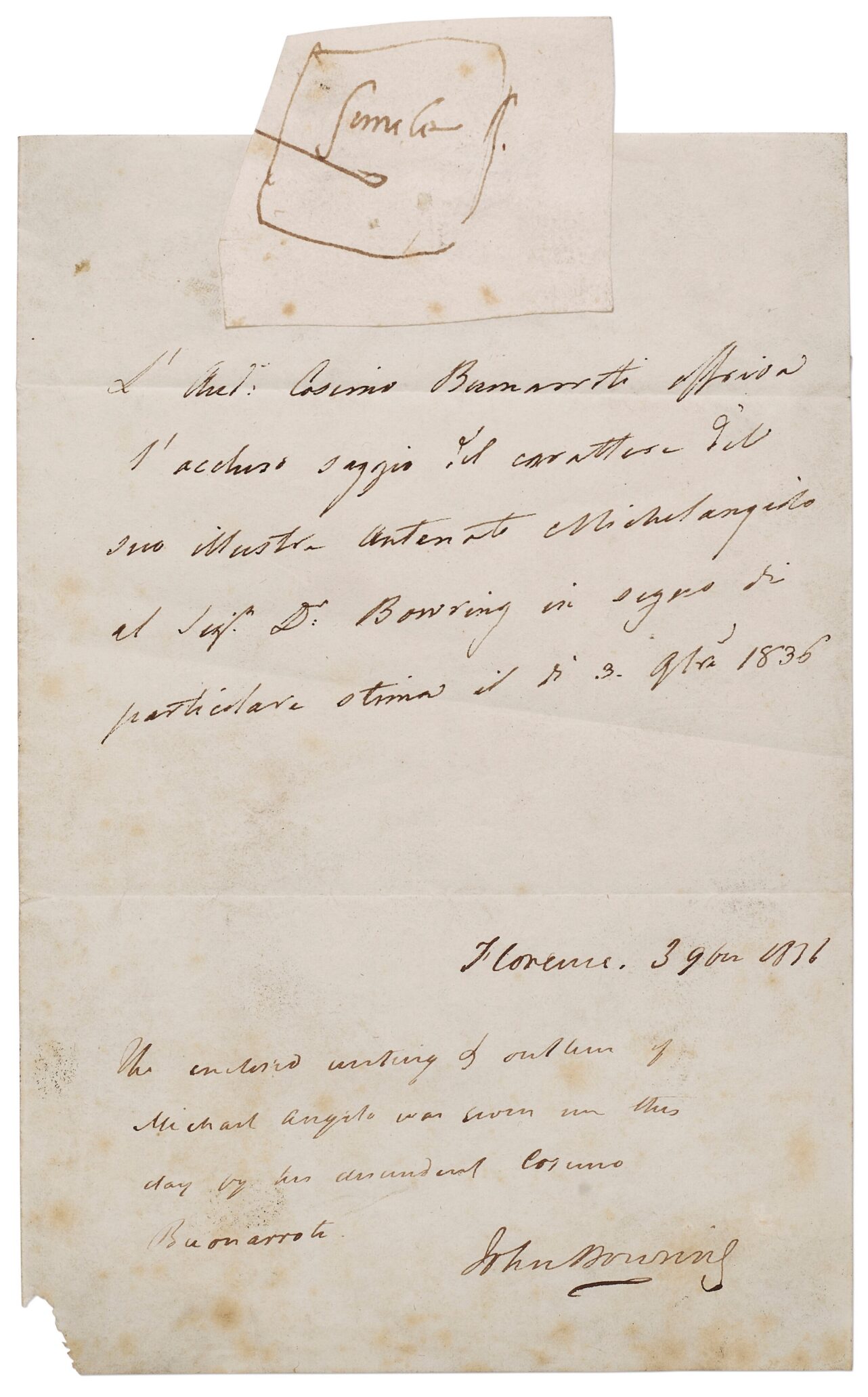 Die Skizze eines Vierecks und das Wort „simile“ (ähnlich) reichten offenbar, um den Schätzpreis von 6000 bis 8000 Dollar um das 25-fache zu erhöhen: Eine nur etwa vier mal sechs Zentimeter große Notiz des italienischen Renaissance-Künstlers Michelangelo (1475—1564) ist in der New Yorker Dependance von Christie’s für mehr als 200.000 Dollar (etwa 190.000 Euro) versteigert worden. Die Anmerkung auf dem kleinformatigen Stück Papier diente dem Bildhauer Anfang des 16. Jahrhunderts zur weiteren Bearbeitung und Skalierung eines Marmorblocks und wurde mit einem aus dem Jahr 1836 stammenden Brief von Cosimo Buonarroti, einem Michelangelo-Nachfahren, auf der Rückseite eines Rahmens gefunden und nun gemeinsam zur Auktion angeboten.