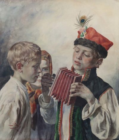 Die Versteigerung von Werken polnischer Künstler der Münchner Schule bei Siebers übertraf alle Erwartungen. Zu den 19 marktfrischen Arbeiten gehörte das Aquarell „Die Ziehharmonika“ von Julian Falat, das seine Schätzung weit hinter sich ließ. Mit einem Limit von 5000 Euro stieg das Werk im Stuttgarter Auktionshaus auf 180.000 Euro. Zum Œuvre des 1853 geborenen Malers und Aquarellisten gehören romantische Naturstudien, Historienbilder und Stillleben. Ab 1889 war er in Berlin am Hof des Kaisers Wilhelm II. beschäftigt. In seinem Spätwerk näherte sich Falat zunehmend der Malweise des französischen Impressionismus an.