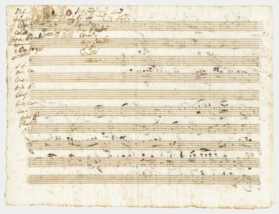 Das Auktionshaus J. A. Stargardt in Berlin handelt mit bedeutenden Autografen. Nun kamen bei einer Auktion Kontaktreliquien von berühmten Musikern zum Aufruf. Mit dabei war ein zweiseitiges Originalmanuskript von Wolfgang Amadeus Mozart (1756 – 1791). Es enthält die vollständige erste Violinstimme für zwei Orchestertänze, sowie drei Entwürfe für das Programm seines berühmten Konzerts im alten Wiener Burgtheater vom 23. März 1783. Das bis dato der Forschung unbekannte Manuskript ist nun für 130.000 Euro an einen privaten Bieter aus Amerika versteigert worden.