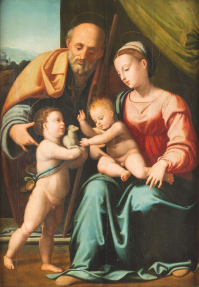 Aus einer bedeutenden Privatsammlung im Ruhrgebiet stammt das beeindruckende, von Fra Paolino signierte Tafelbild der »Heiligen Familie mit dem Johannesknaben«, das bei Hargesheimers Auktion vom 12. bis 14. September eine Schätzung von 50 000 Euro trägt. Allein die kunstvolle Darstellung der zarten Hände oder die kontrastreiche Behandlung der Gewänder laden zur andächtigen Vertiefung ein.