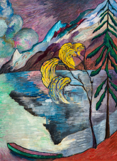 Einen kleinen Fischerhafen verwandelte Marianne von Werefkin in eine wildromantische Landschaft, in der sich dunkle Wolken neben glühenden Bergmassiven auftürmen. Die Arbeit entstand um 1923 in der Schweiz, in die Werefkin mit ihrem Partner Alexej Jawlensky – beide wichtige Vertreter des Expressionismus – nach Ausbruch des ersten Weltkriegs geflohen waren. Am 19. Juni wird das Bild (Taxe 140 000 bis 160 000 Franken) bei Beurret & Bailly in Basel versteigert.