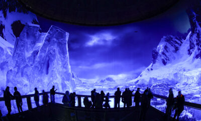 Eisberge, Wale, Pinguine und ein Schiffswrack: Das neue 360-Grad-Panorama von Yadegar Asisi im Leipziger Panometer zeigt die Welt der Antarktis voller Dramatik und Schönheit. Der Künstler mahnt aber auch