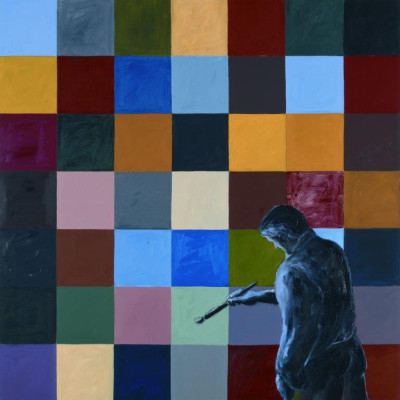 Was sehen wir, ein Bild oder ein Trugbild? Schon aus der Entfernung betrachtet, von der gegenüberliegenden Wand, flirrt die Leinwand wie eine Fata Morgana. Als sei das Gemälde im Raum präsent und gleichzeitig weit weg. Treten wir näher heran, regt sich Leben in den blauen, roten, grünen Linien. Sie geraten in Bewegung, ziehen sich an manchen Stellen scheu zurück, an anderen wölben sie sich dagegen umso aufdringlicher dem Betrachter entgegen und erzeugen so den Eindruck einer plastischen Räumlichkeit, die man glaubt mit den Händen fassen zu können – bis man in Luft greift. Niemals kommt das Auge zur Ruhe. Die an- und abschwellenden Linien sind wie eine Welle, die kontinuierlich an den Ufern des Bewusstseins anbrandet. In einer Zeit, in der wir Bildern nur wenige Sekunden an Aufmerksamkeit schenken, möchte man eine Ewigkeit vor diesem Anblick verharren.