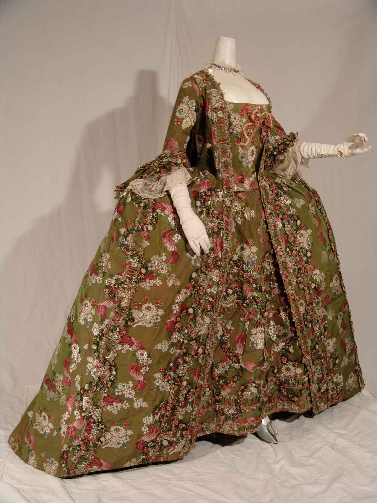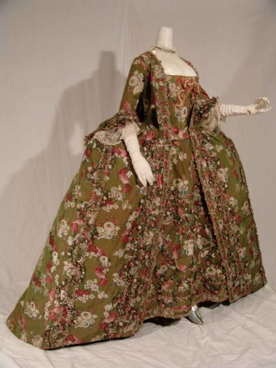Bei der Farbenpracht und Mustervielfalt der sogenannten bizarren Seiden, deren Verbreitung gegen 1690 begann und die im 18. Jahrhundert ihren Siegeszug feierten, gehen einem die Augen über. Erst recht, wenn man sich die betörende Wirkung solcher Gewänder bei schimmerndem und flackerndem Kerzenlicht vorstellt! Im 17. Jahrhundert kam die Ikat-Technik auf, bei der das Garn vor dem Weben mit Holzmodeln bedruckt wurde. Eine Anzahl perfekt erhaltener Stoffe diente einst als Musterkollektion für Vertreter der Lyoner Manufaktur.