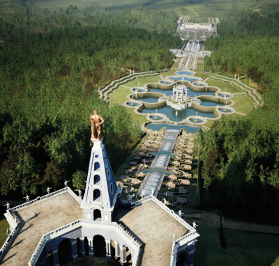 Marta Minujin, „Parthenon of Books“ während des Aufbaus vor dem Fridericianum, Kassel (Abb.: Marta Minujín, The Parthenon of Books, 2017, Friedrichsplatz Kassel, documenta 14, Foto: Mathias Völzke)