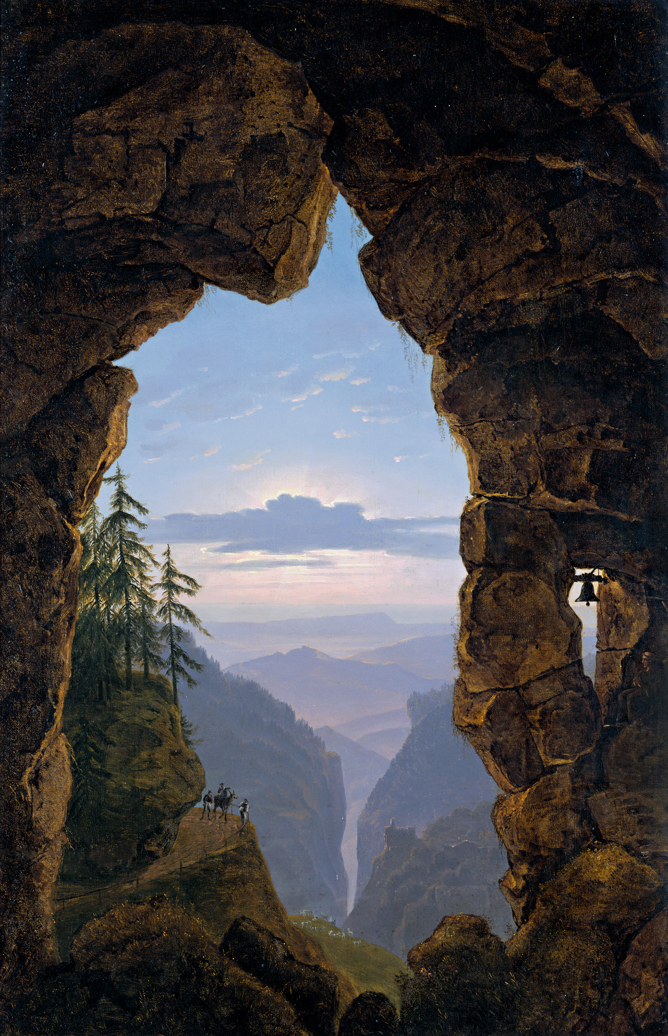 Auch die Maler entdecken vor 200 Jahren die Lust am Wandern. Sie verlassen ihre Ateliers, um in der freien Natur neue Motive zu finden, verewigen sich mit Hut und Stock oder winzig klein an der Staffelei vor mächtigen Bergpanoramen. Die Italiensehnsucht grassiert, und auch die heimischen Wälder und Auen sind es nun wert, gemalt zu werden. Die Natur wird zur Quelle für Frohsinn und Freiheitsgefühl, sehr schön eingefangen auf einem der wenigen Landschaftsgemälde des Dessauer Hofmalers Heinrich Beck. Sein „Blick auf das Etschtal“ von 1839 zeigt zwei Wanderer vor dem Abstieg in ein Tal, vor ihnen liegt, in goldenes Licht getaucht, die Südtiroler Bergwelt. Fröhlich schwingt einer der beiden, wohl der Maler selbst, seinen Hut, als könne er sein Glück kaum fassen, vor sich das gelobte Italien zu sehen. Das Tal ist weit, die beiden werden noch eine Weile unterwegs sein, doch das ist nebensächlich. Sie freuen sich schlicht an der Bewegung in der Natur und an der traumhaft schönen Aussicht…