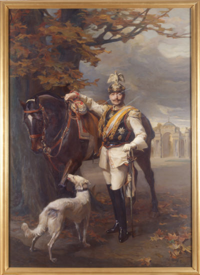 Vielleicht hätte das überraschend und auf dringenden Wunsch Wilhelms ins Doorner Exil nachgesandte Historienbild, der „Marsch preußischer Kavallerie“, spezifischere Aussagen machen können. Es hätte die Mühe gelohnt, über die Gründe dieser Nachsende-Forderung nachzudenken. Jedenfalls hätte das Bild sehr viel mehr zur Kenntnis ex-kaiserlicher Vorstellungen, Erwartungen und Wünsche beitragen können, als angeknautschte Uniformen an den „erhaltenen, original beschrifteten Garderobe-Haken“.