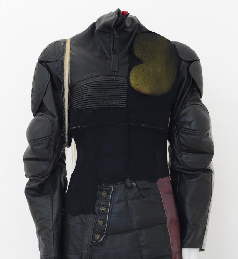 Kleidung ist der Panzer, der die Zumutungen der Außenwelt vom eigenen Körper fernhält. Alexandra Bircken, die in den Neunzigerjahren in London Modedesign studierte, verweist auf diese Funktion, wenn sie mit Materialien wie Latex und Leder arbeitet. Doch gleichzeitig vermitteln ihre Werke ein Gefühl von Verletzlichkeit: Aus Motorradfahrermonturen schneidert Bircken tragisch wirkende Figuren wie „INXS“ von 2016. Und die Latexanzüge drapiert sie oft – wie jetzt in Wien – als leblos erschlaffte Wesen. Der Anblick verstört. Und so greift das, was uns schützen sollte, uns doch im Kern an.