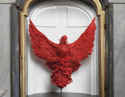 Spuren alternativer Lebensentwürfe findet man in diesen mit Trophäen gespickten Habitats jedenfalls nicht. Vielleicht tauchen deswegen immer wieder Putztruppen auf, die den Staub vergangener Zeiten beseitigen, einen besseren Durchblick auf Gewesenes überhaupt erst möglich machen. Den Abschied von der heroischen Epoche der männlichen Genies markiert Kneffel mit roter Farbe, hervorhebenden, abhakenden oder durchkreuzenden Zeichen, die etwas aus dem Kanon durchstreichen. Und sie schreibt sich damit selbst in den imaginären Club ein, der Frauen den Zutritt lange genug verwehrte.