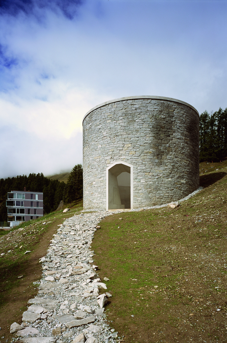 auf den Piz Uter, wo man nachts die Sterne beobachten kann. Von außen wirkt der Bau des Lichtkünstlers wie eine archaische Kapelle, innen fühlt man sich dem Himmel ganz nah. Andere treffen sich am liebsten im hauseigenen Kino, wo Filme von Fischli/Weiss laufen, oder in der Bar, die