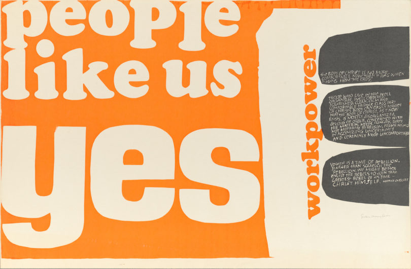 Eine ebenfalls sehr spannende Position ist Corita Kent. Bei ihr heiligte der Zweck sozusagen die Mittel, denn die katholische Nonne, die an einem College in Los Angeles Kunst unterrichte, nutzte in den Sechzigerjahren das profane Unterhaltungsprinzip des poppigen Seriendrucks um auf reale Missstände wie Rassismus, Armut und soziale Ungerechtigkeit aufmerksam zu machen. Sie schuf die Gegenbilder zu Warhols gedruckten Cola-Flaschen und Geldscheinen. Im Museum Ludwig ist „Sister Corita“ mittlerweile wohlbekannt, denn bereits 2007 wurde sie auf Initiative des damaligen Direktors Kaspar König groß gezeigt und auch Arbeiten von ihr für die Sammlung angekauft. Die Kölner Kanonrevision hat also schon vor „Mapping the Collection“ mit dem Rütteln an den Denkmälern der Pop-Art-Helden begonnen.