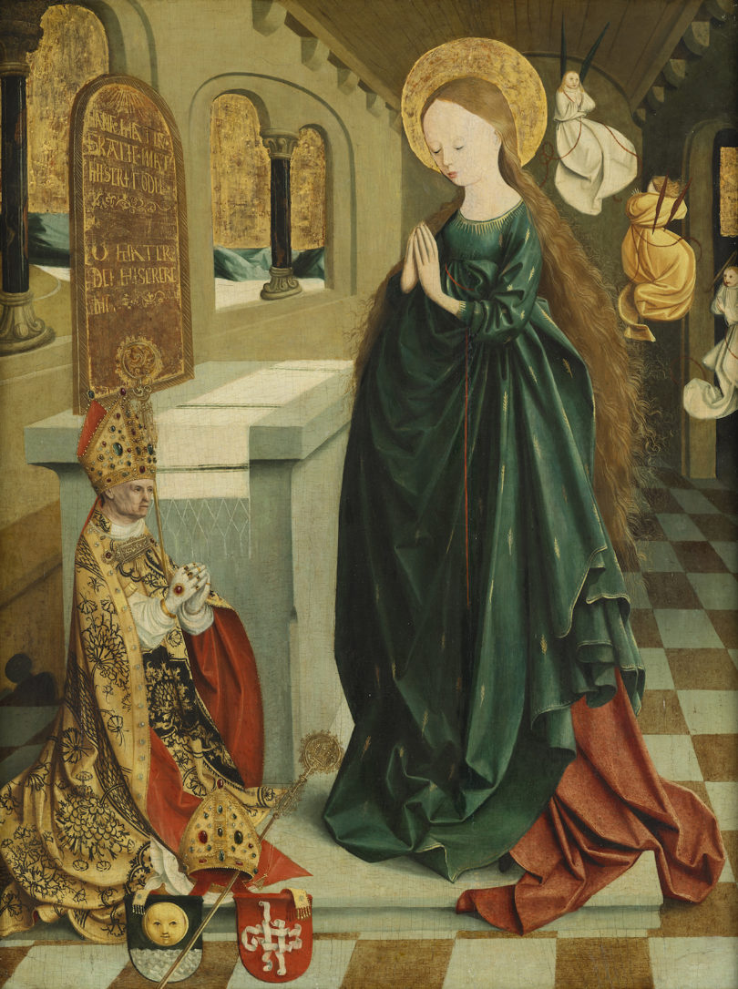 Einen schöneren Künstlernamen hat keiner. Und er bekam ihn nur für ein einziges Werk: den spätgotischen Flügelaltar, den dieser unbekannte Meister vor 1500 wohl für die Stiftskirche von Mondsee schuf. Doch spätestens 1791 bei der Auflösung des Klosters wurde der Altar zerteilt und diese Teile in alle Winde verstreut. Fünf Einzelbilder bewahrt heute das Belvedere, darunter die „Maria als Tempeljungfrau im Ährenkleid“ von der Predella, eines die Fürstlichen Sammlungen Liechtenstein. Und weil seit dem Jahr 2000 auch die Oberösterreichischen Landesmuseen eine Tafel besitzen und 2015 eine zweite aus Privatbesitz ankauften, können zum ersten Mal acht -wunderschöne Gemälde des Meisters von Mondsee wieder vereint werden.