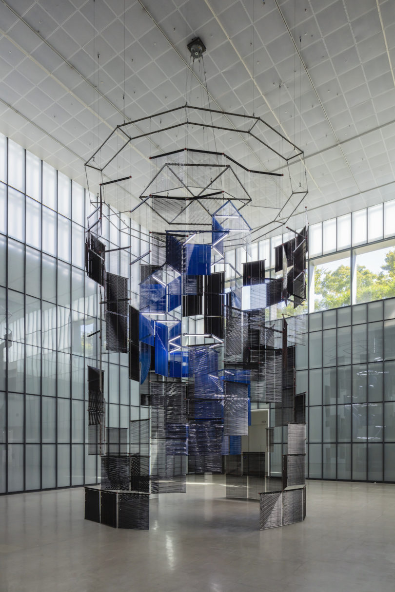 Langsam rotieren die spiralförmig angeordneten blauen Jalousien in kaltem Neonlicht und gleiten lautlos am Kreis der sie umgebenden schwarzen Jalousien vorbei. Sichtfelder öffnen und schließen sich, ein Wechselspiel aus Innen und Außen, Durchlässigkeit und Abgrenzung. Weit über die Köpfe der Betrachter hinweg erstreckt sich die imposante Installation „Silo of Silence – Clicked Core“, die an der Decke der 17 Meter hohen Seoul Box aufgehängt ist. Dieser spektakuläre Raum gehört zum 2013 in Seoul eröffneten Museum für moderne und zeitgenössische Kunst (MMCA). Jetzt widmet das MMCA der Künstlerin Haegue Yang, die in Berlin und Seoul lebt und an der Frankfurter Städelschule lehrt, eine große Werkschau, die einen Einblick in ihr umfangreiches Schaffen der vergangenen 20 Jahre gibt. In jüngster Zeit hat sie – der Pandemie zum Trotz – allein vier Einzelausstellungen eröffnet, unter anderem im MCAD in der philippinischen Hauptstadt Manila, im AGO in Toronto und in der Tate St Ives in Großbritannien.